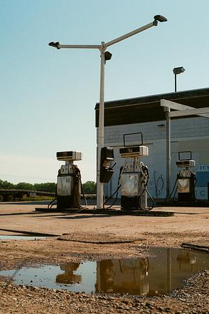 Old gas station on film